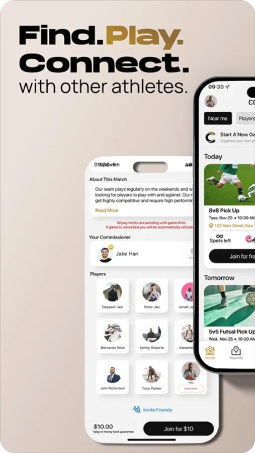 Don't miss out on the excitement of Conquer, the ultimate platform for athletes who want to play pickup sports, rent space, organize games, and connect with others. Download now to start playing more sports and earning money through the Conquer app.