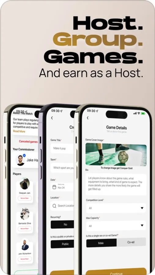Organizing a sports game with Conquer is easy, lucrative and scalable. It’s the perfect side-hustle for athletes who want to make money organizing and playing sports.