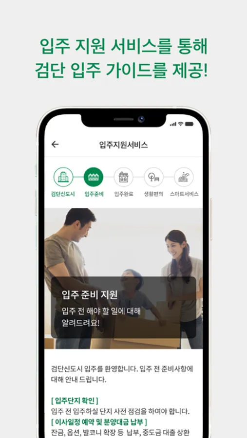 - 국내 최초의 스마트도시 인증을 받은 검단신도시에서는 주민을 위한 전용 모바일 서비스를 제공합니다.