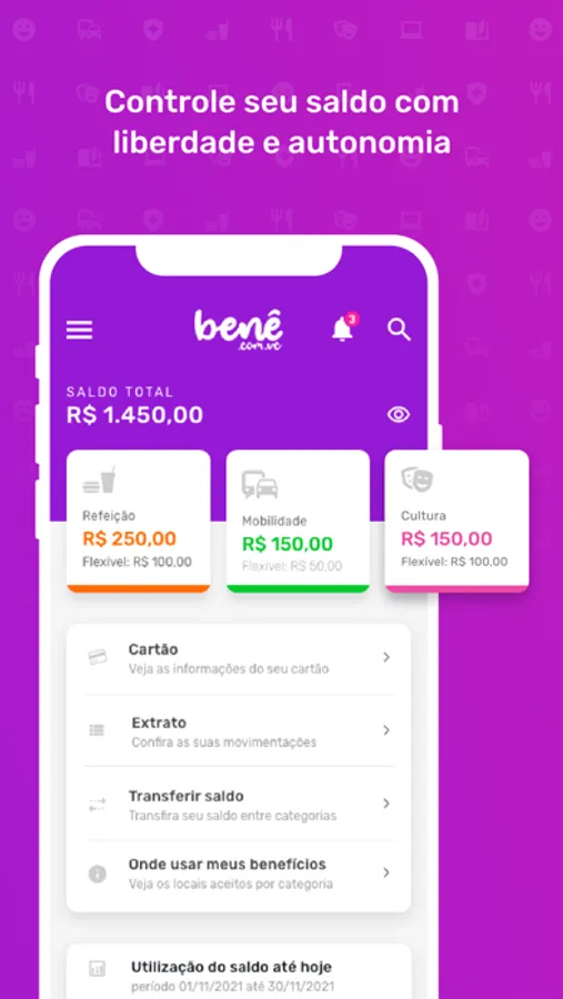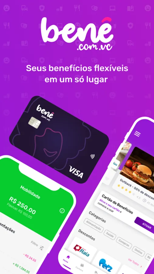 Leve a Benê com vc! Em nosso aplicativo você faz a gestão de benefícios flexíveis com liberdade e autonomia e ainda conta com um clube de vantagens, cashback, seguros e muito mais!