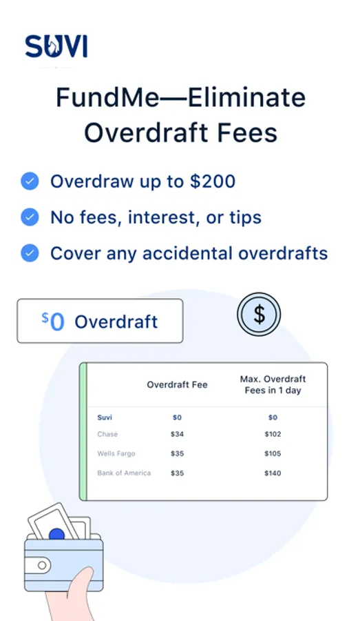 Overdraw without incurring any fees using Suvi’s FundMe**