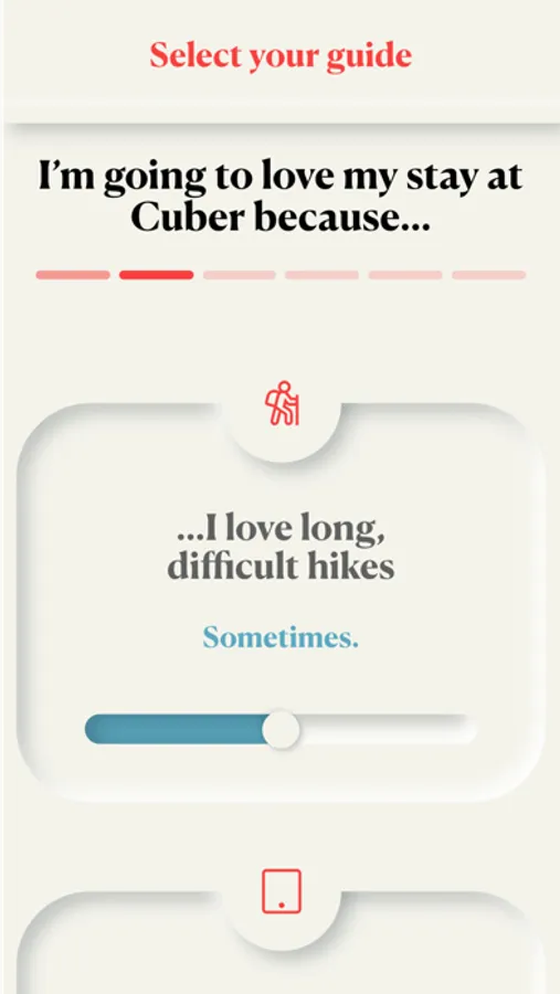 With our App you are able to arrange everything at your fingertips. 24/7, when it suits you. Your Cuber experience starts from the moment you book. We welcome you to our app with a unique link. We would like to get to know you and let you select a personal Guide who will help you get the best out of your stay from then on.