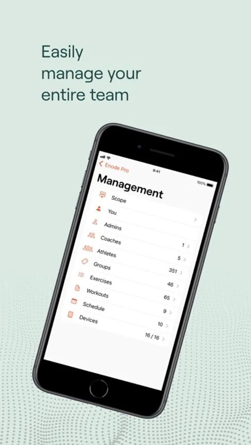 Get the most out of every single training session. With Enode Pro you optimally train with barbells, dumbbells, kettlebells, machines or body weight. Connect an Enode Pro sensor, attach it to the training device, and you're ready to go. The Enode ecosystem makes it very easy to manage and control the entire strength training of large institutions and teams.