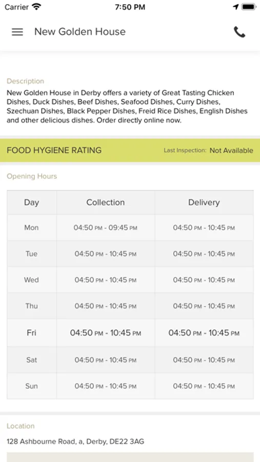 Thank you for visiting New Golden House in Derby. We hope you enjoy our online ordering app and your food.