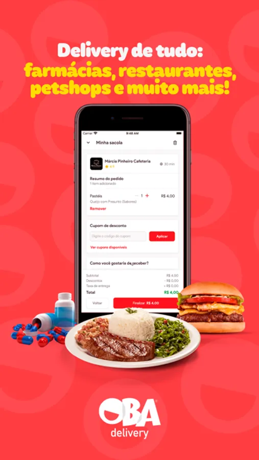 Já imaginou pedir tudo em um único app? No Oba Delivery é assim: delivery de farmácia ou jantar, tudo em um só lugar!