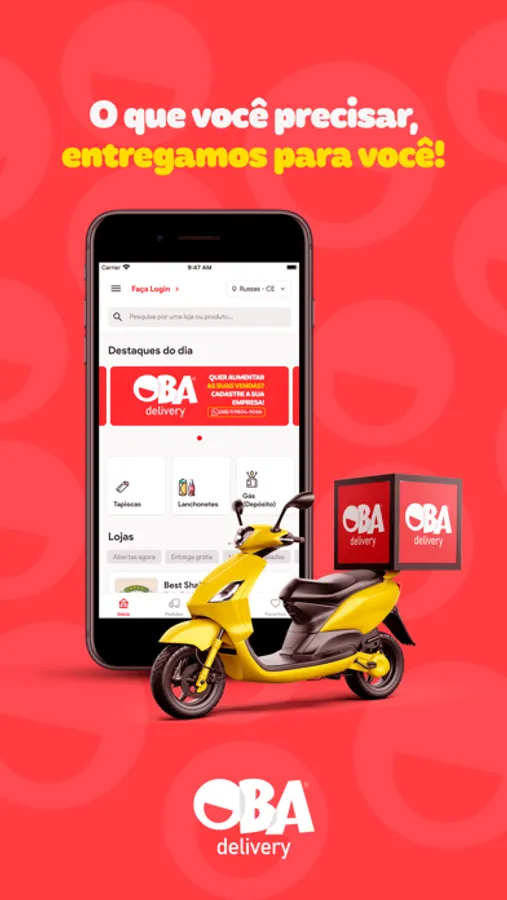 Nosso aplicativo multi-delivery oferece praticidade e comodidade para você realizar os seus pedidos de forma fácil, rápida e com promoções exclusivas. Economize tempo e dinheiro com o Oba Delivery!