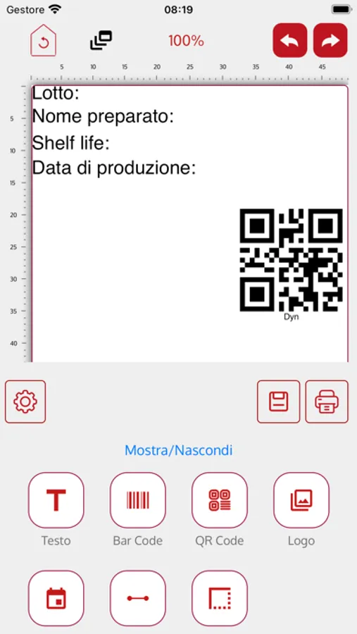 L'app Orved Control ti permette di creare etichette e stamparle con la stampante che ti viene data in dotazione.