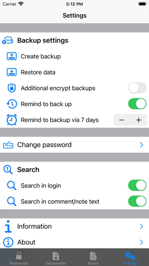 - create new passwords, notes, copies of document and information about of your bank cards, edit them