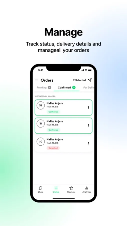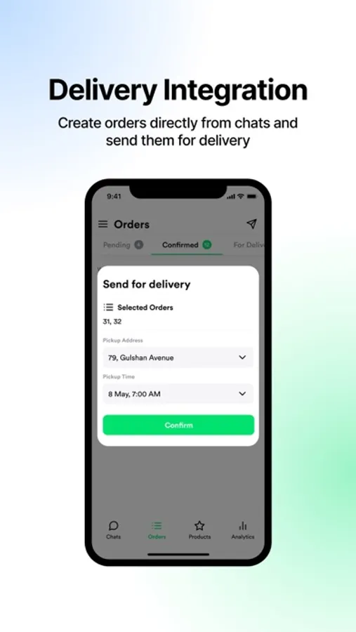 • When your customers send order details(phone, address, etc.) - mark them in chats and create orders.