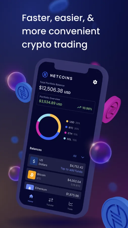 Make instant trades or set up limit orders with a few taps. Whether you’re a beginner or a seasoned investor, you’ll find the Netcoins app an easy way to invest in crypto.