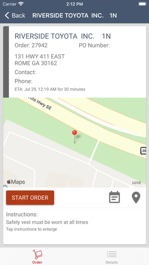 Navigate drivers to a stop using native device maps or optional commercial truck maps