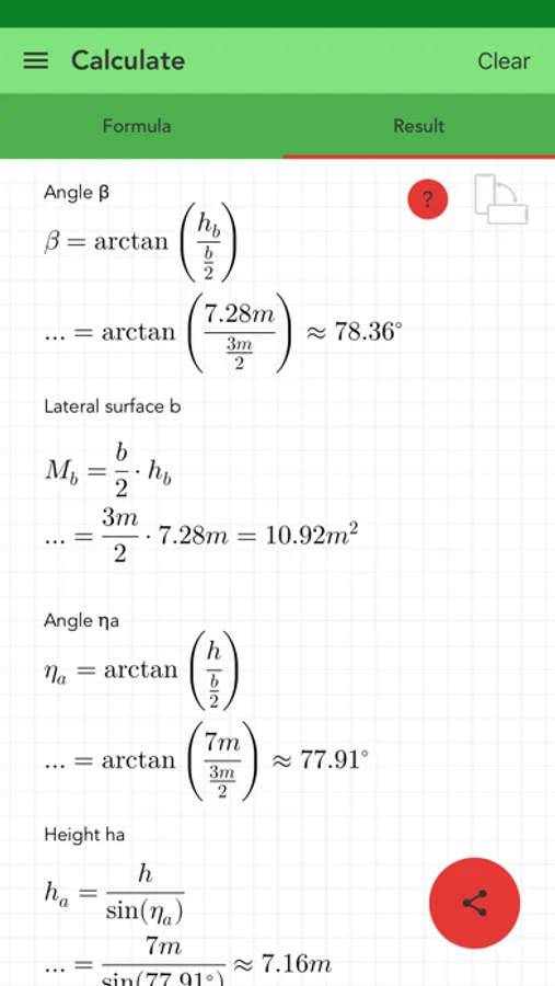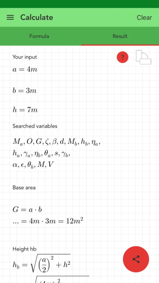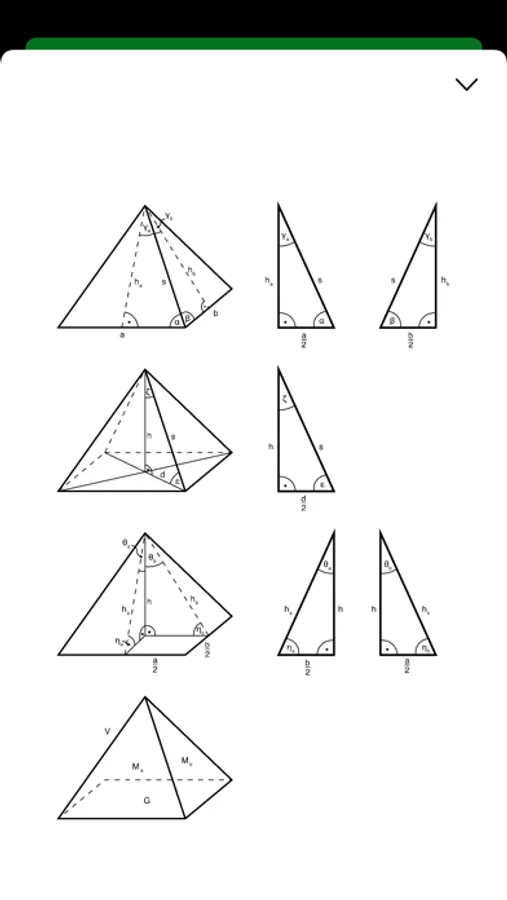The best app to calculate all quantities of a pyramid. You must enter some quantities like an angle and a length. The algorithm searches the formulas of the missing quantities, shows them and calculates the results.