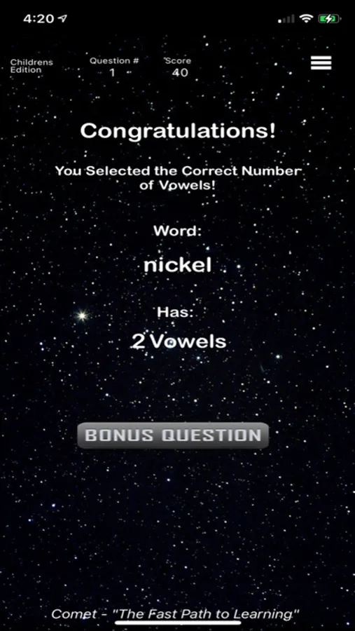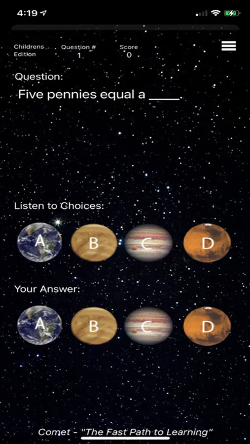 The Spelling With Comet Game is the Fast Path to Learning! This Children's Game has over 420 questions for those 8-10 years of age and older - it's fun for everyone. Enhance your children's knowledge. Good spelling can never be under estimated!