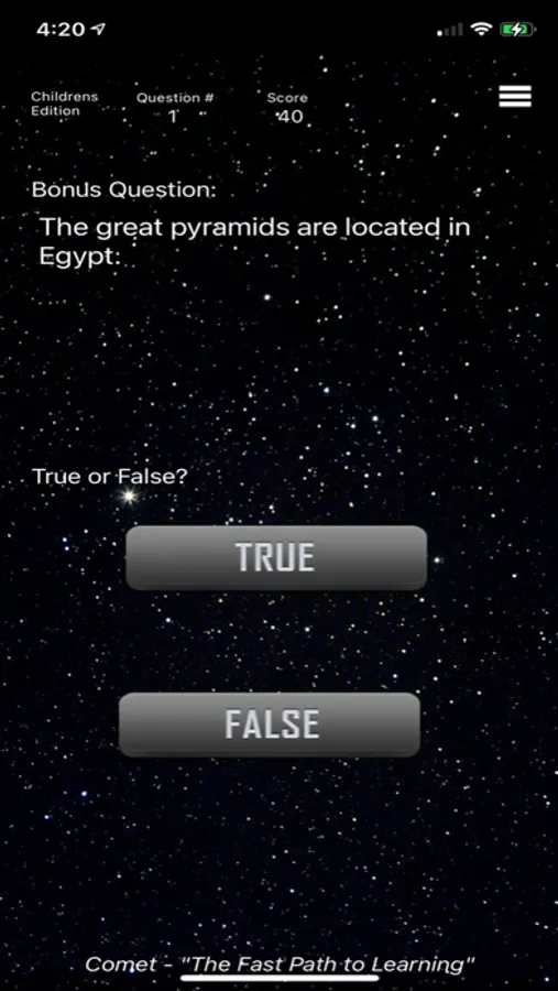 - There's more fun once you answer the Bonus Question, based on True and False questions.