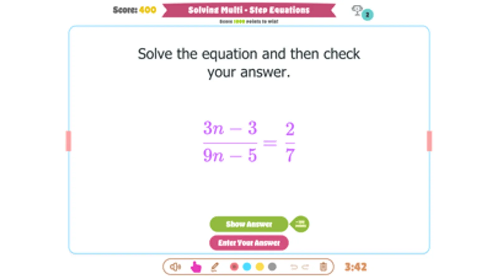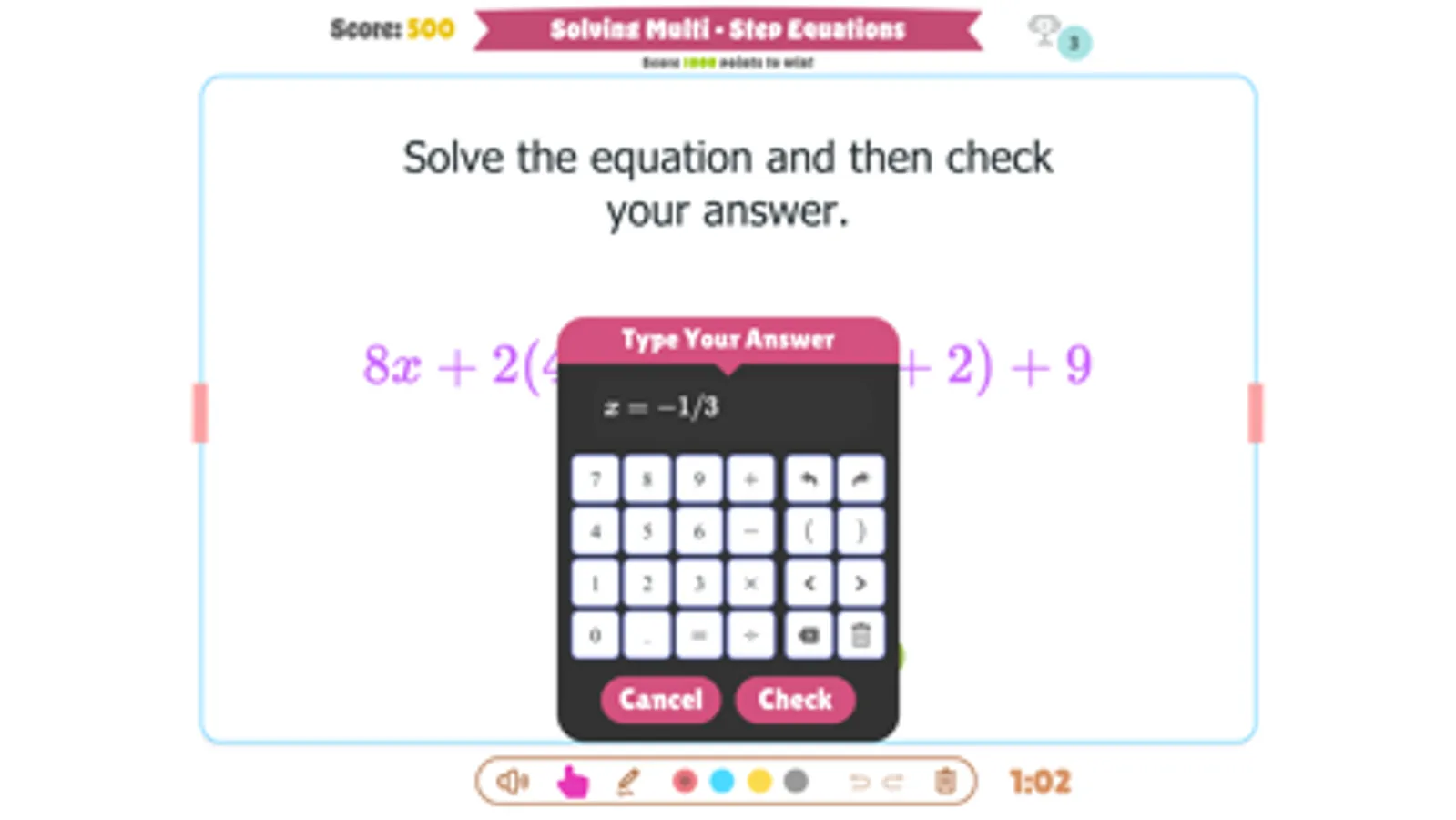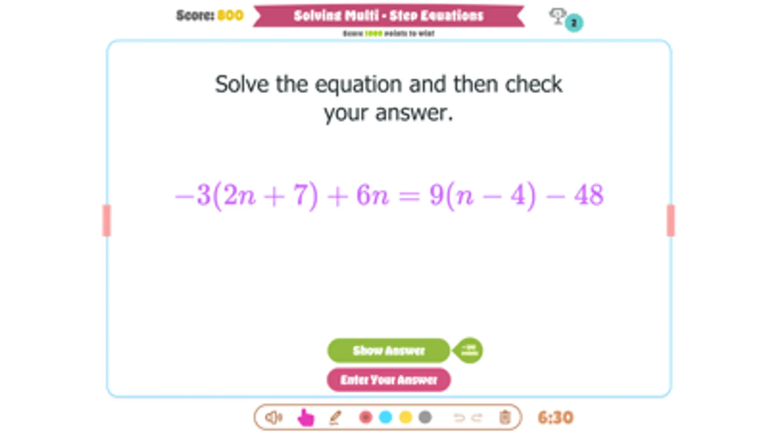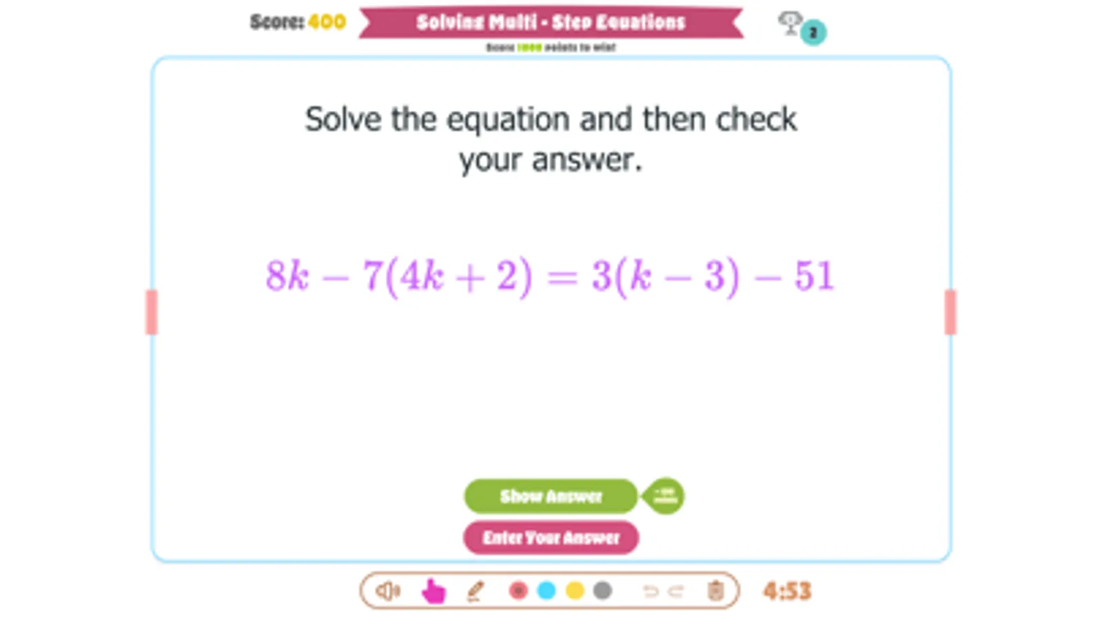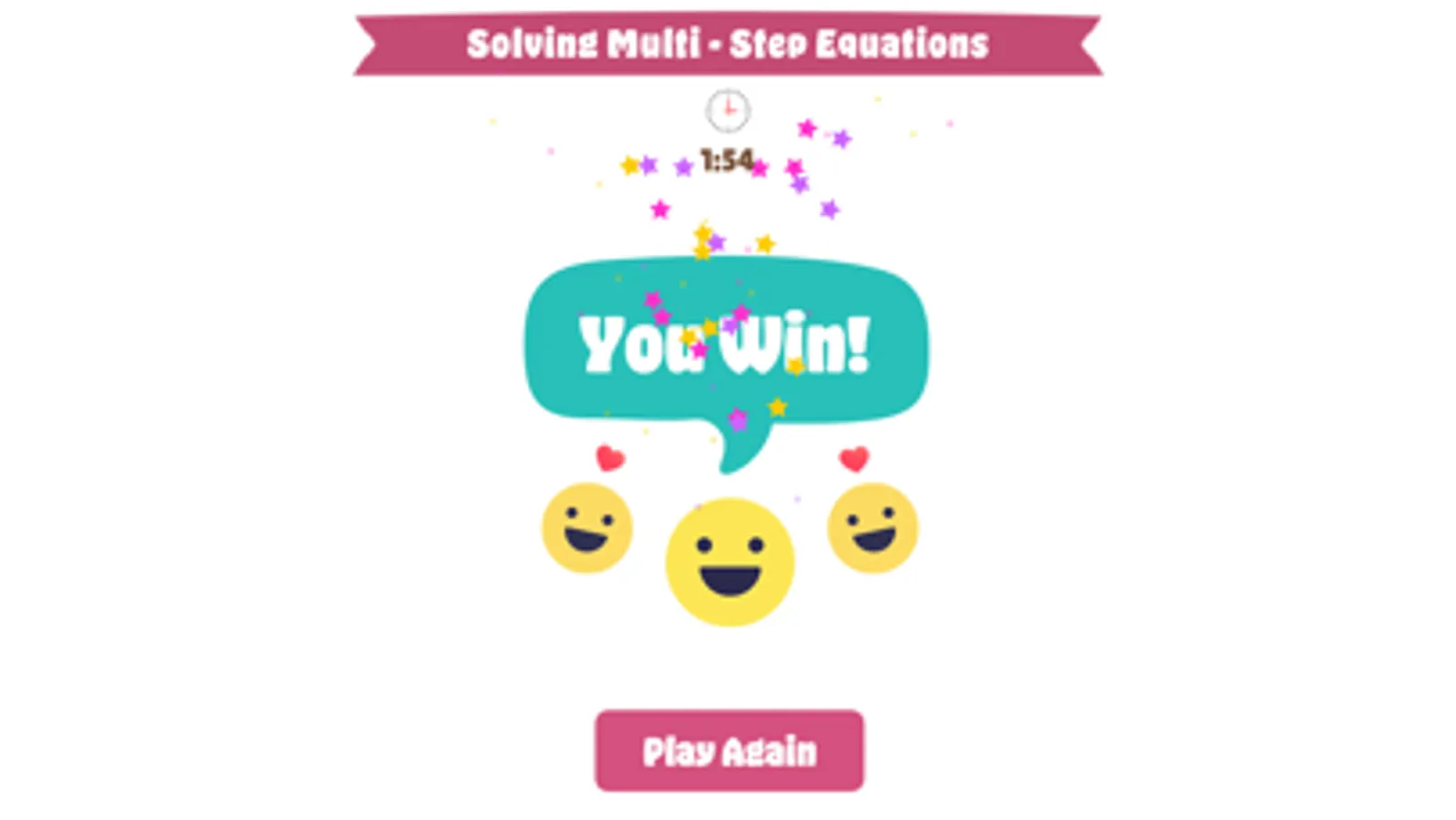 This game is designed to help students practice solving multi-step equations with variables on both sides in a fun way!