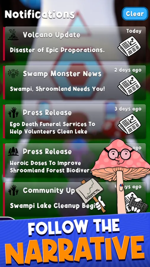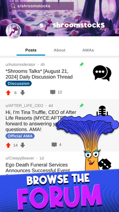 Read the mainstream media to get the inside scoop on what’s happening in Shroom Land and refine your stock market strategy. Whether it’s an erupting volcano, alien invaders, or corruption on Shroom Street, you’ll want to stay informed to stay ahead of the market! Then head over to Shroomit page “shroomstocks” to dive deeper and get a sense of the stock market sentiment.