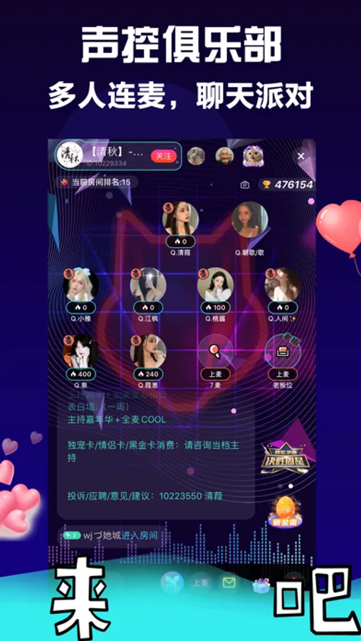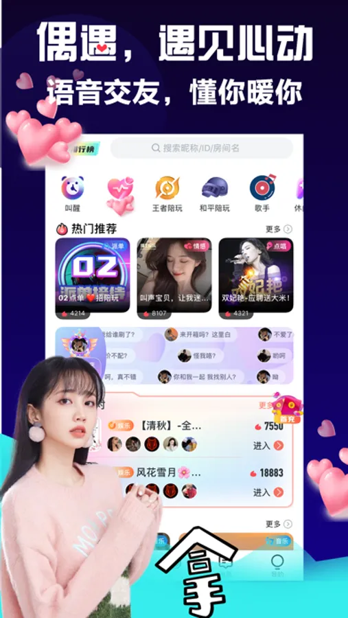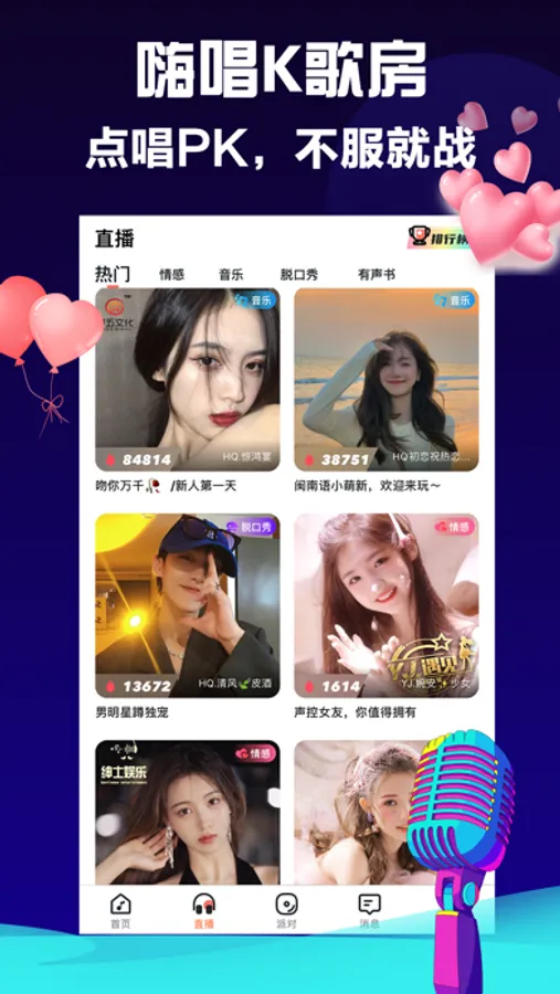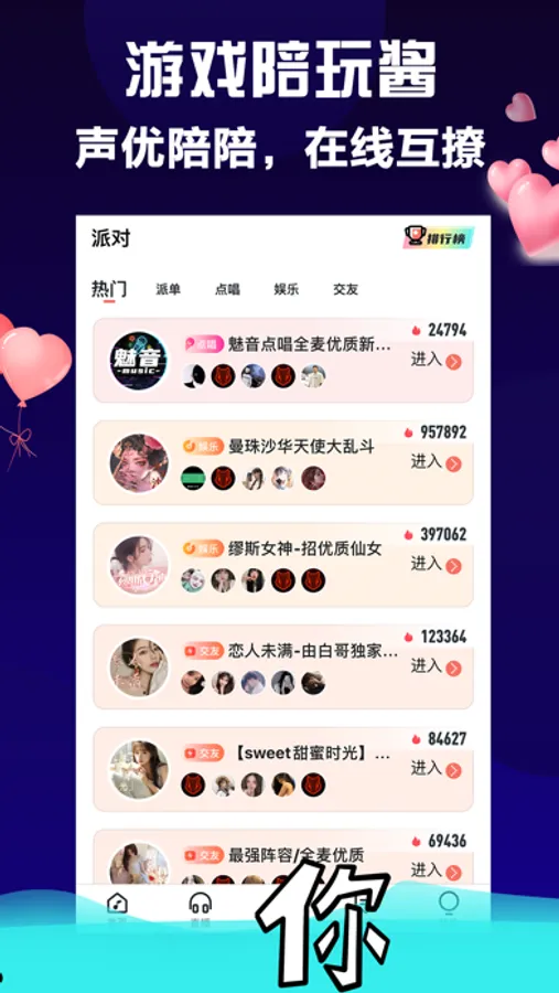 【语音直播】 在线真人K歌,游戏陪玩,海量语音派对,随时随地多人语音连麦畅聊,相亲房、陪聊房、情侣房等的个性房间,等你来参与。