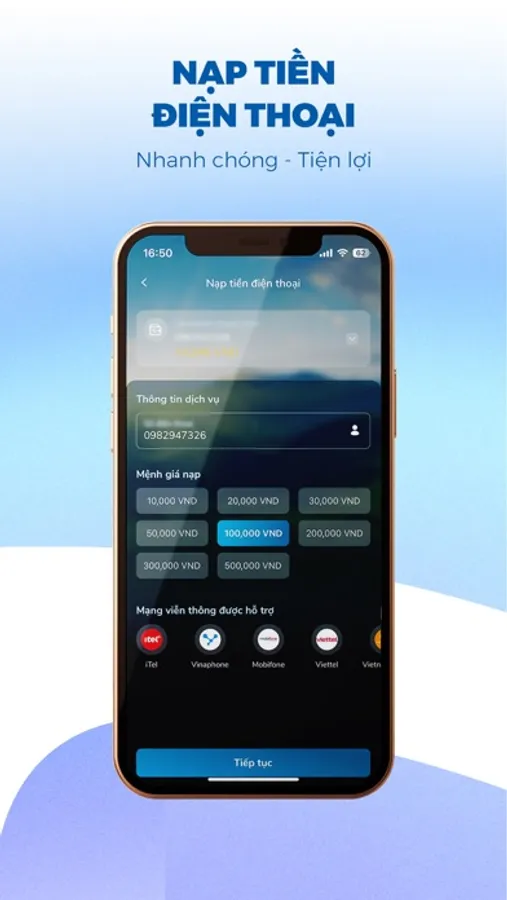 - Nạp tiền điện thoại di động mọi lúc mọi nơi;