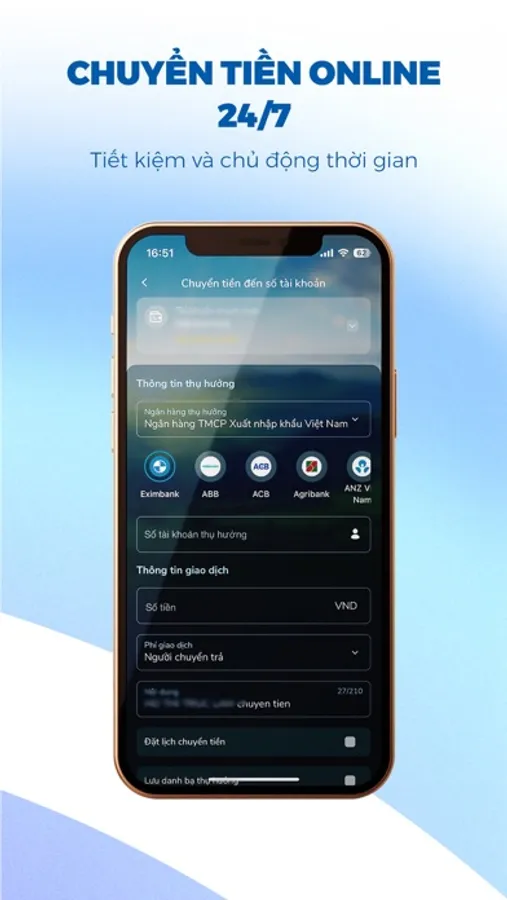Eximbank EDigi - A multi-utility digital bank that fully meets all basic financial transactions to advanced utilities including: