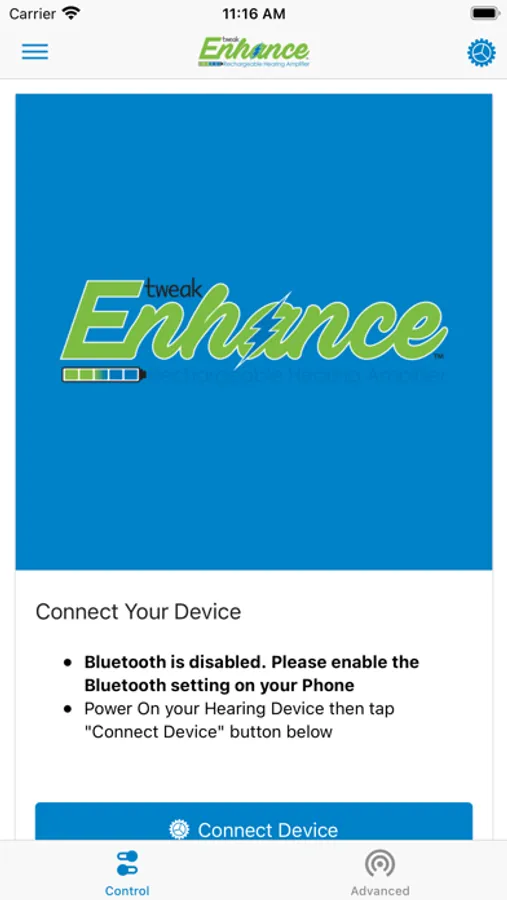 Control your Tweak Enhance Rechargeable Hearing Amplifier on App