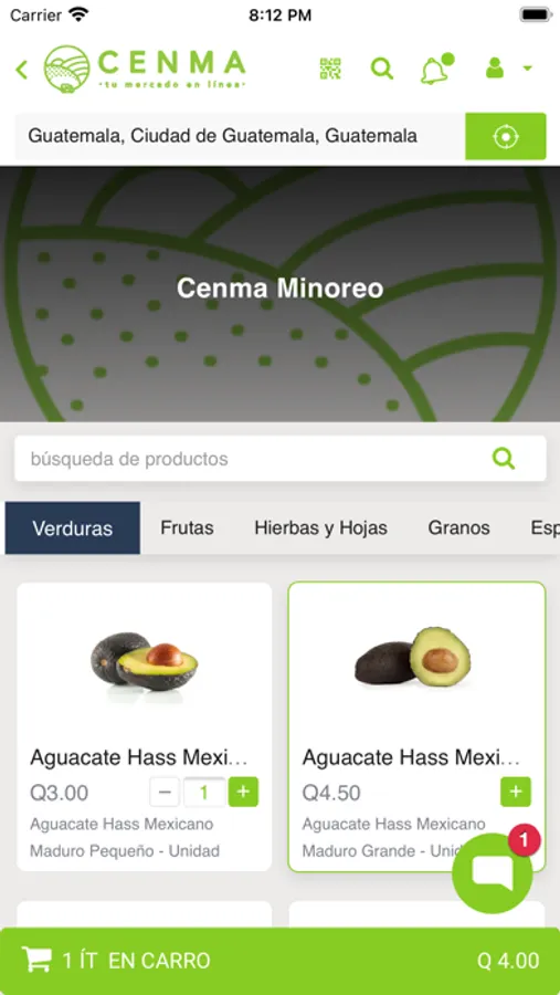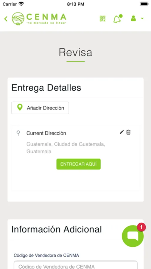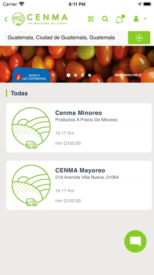 "Una de las aplicaciones de reparto para realizar pedidos al central de mayoreo en Guatemala (CENMA).
