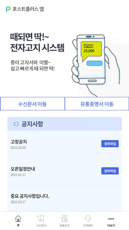 포스트플러스 앱을 통해 행정.공공기관과 금융고지서 및 기업의 우편물을 종이 대신 모바일앱으로 받아보고,