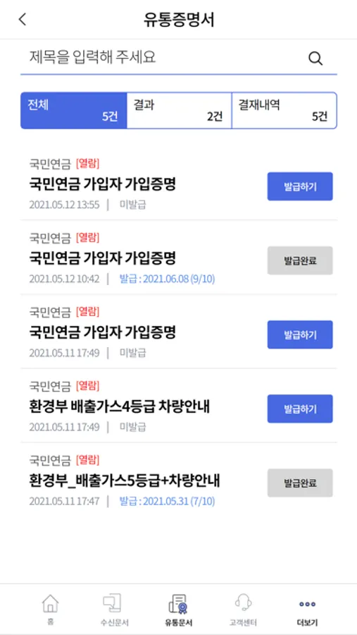 - 통지서/고지서/중요안내장등의 공인전자문서의 유통증명서 내역을 발급