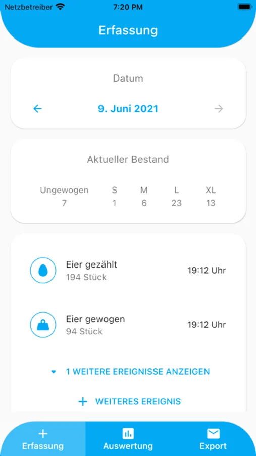 Mit MyHühnerstall erledigst du die Erfassung von gelegten, gewogenen und verkauften Eiern im Handumdrehen. Dabei kannst du sowohl den Verkauf an externe Kanäle wie Märkte aber auch für eigene Hofläden oder Automaten erfassen.
