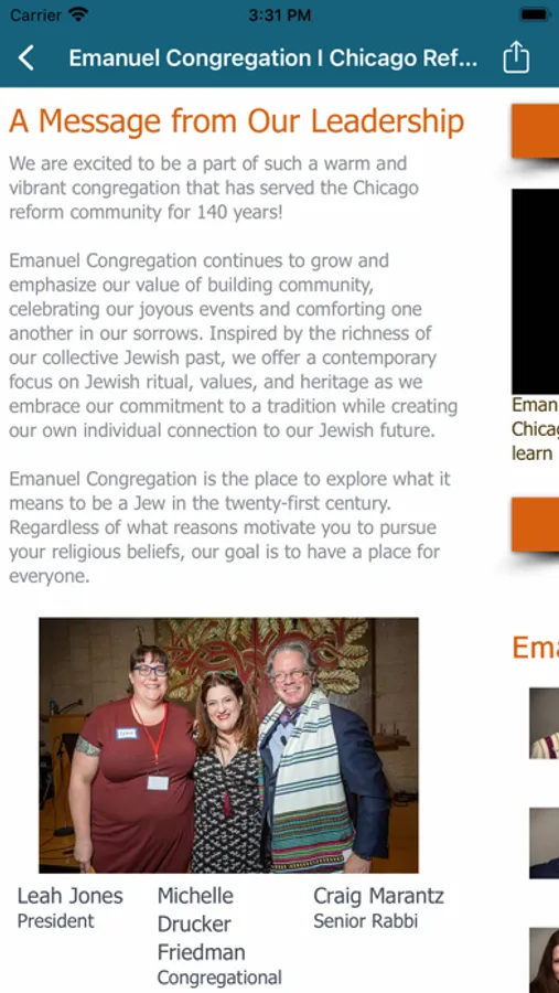 At Emanuel Congregation, we open our doors to all who seek richer, more meaningful lives. Together, our diverse community engages in prayer, lifelong learning and tikkun olam (repairing the world), empowering adults and children alike to apply Jewish values to our everyday lives and to be a collective force for good.