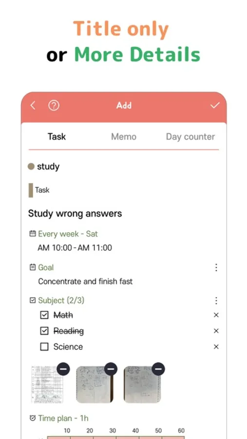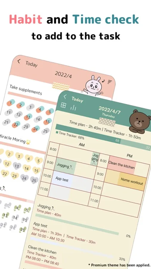ReBorn allows you to check the progress of the repeated habit. (It is checked when the task is completed.)