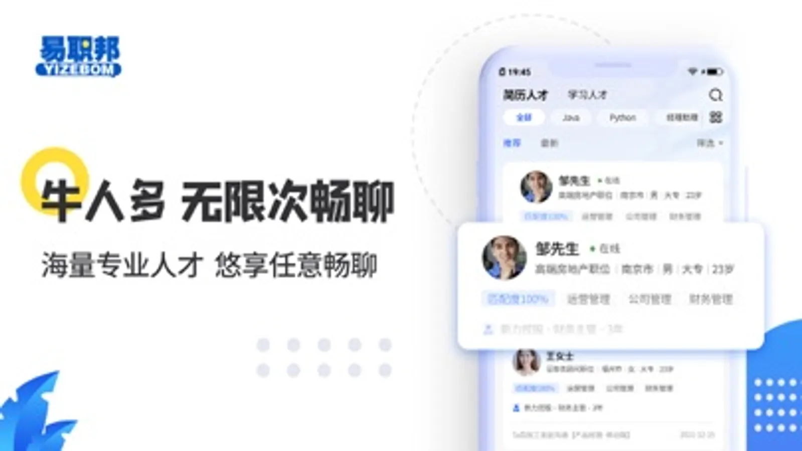易职邦是一款集流程管理、AI 智能工具及 BI 数据分析功能为一体的智能招聘员工管理系统。我们支持高效准确的简历解析、人才推荐,也提供灵活的移动端管理与个性化招聘流程配置等功能,帮你提高企业人才密度,降低招聘管理成本。