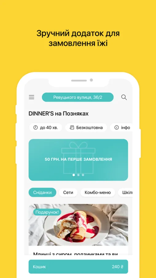 - в меню: основні страви на обід, комбо-меню, обіди для двох, безліч пропозицій на сніданок та на вечерю.