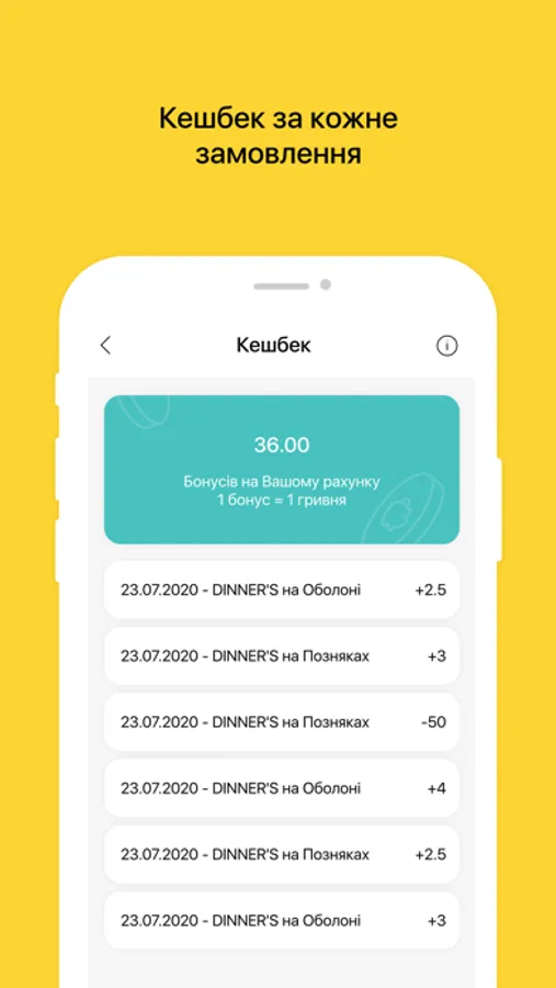 - отримати індивідуальні знижки та стежити за акціями закладів;