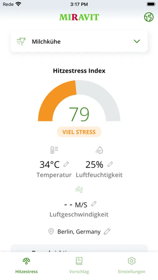 Die MIRAVIT KeepCool App ist ein hilfreiches Tool, um den Hitzestressindex Ihrer Herde festzustellen.
