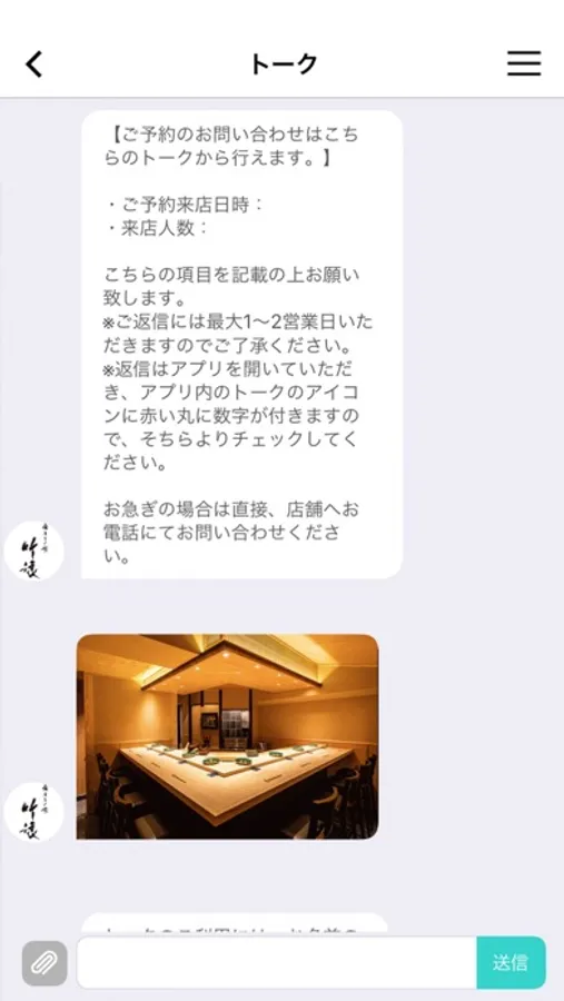 アプリ内トーク機能から予約のお問い合わせもすぐに出来ます。