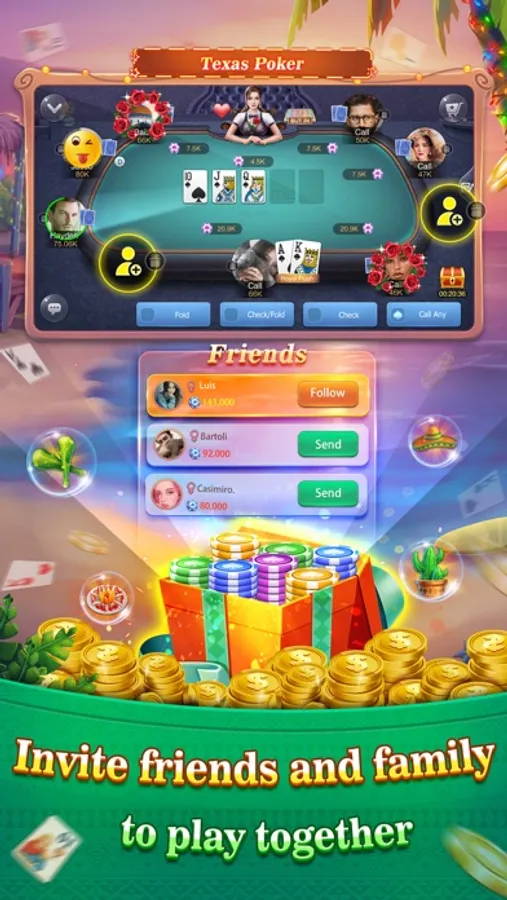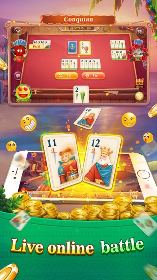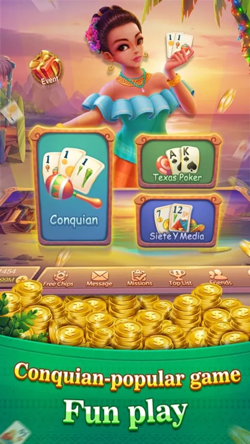 Conquian Gratis is a popular poker game in Mexico. This application contains Mexican local poker games such as Conquian, Texas Holdem and Siete Y Media. The inner graphics are exquisite, the judgement is fair and just. You can easily win plenty of chips and super-value rewards while playing.