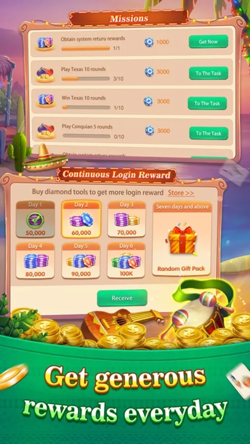 1. Download for free, play for free, log in every day to get free chips. Novice rewards, online rewards, everyday task and many other ways to get plenty of chips.