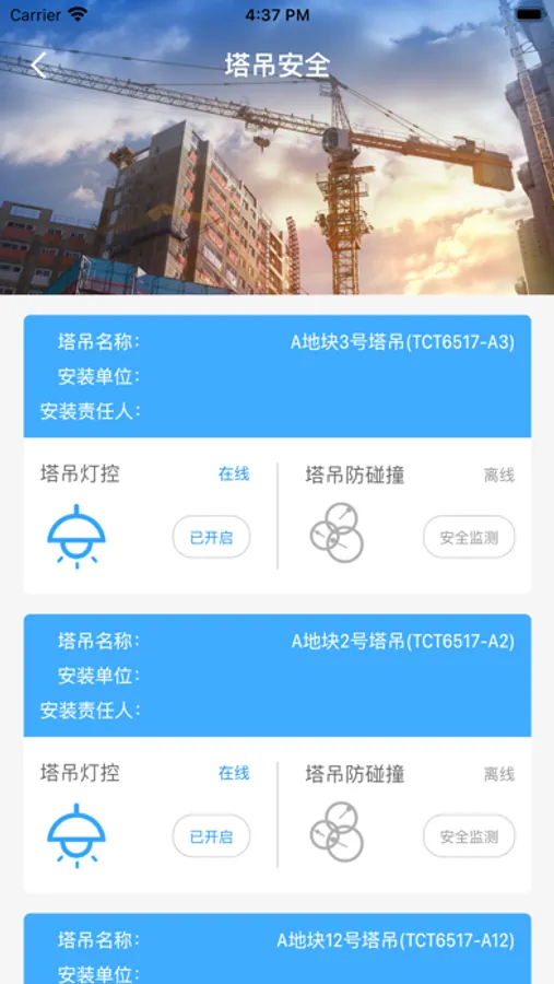 QAY智慧工地是武汉擎安云信息技术有限公司基于云计算、物联网、大数据、虚拟现实、人工智能、5G、BIM等新一代信息技术,实现建筑施工项目的人、机、料、法、环等资源的深度融合,服务现代智慧工地工程监管和项目管理的新技术、新模式、新业态,让所有的建筑工地都成为数字化、智慧化的工地。APP端已经集成20多个子模块,如远程视频监控、扬尘监测与自动喷淋联动、气象环境监测、塔吊安全、升降梯安全、智能烟感、能耗监测、人员定位、工程车安全作业、料仓安全监测、深基坑监测、高支模监测、实名制考勤、视频AI分析等。