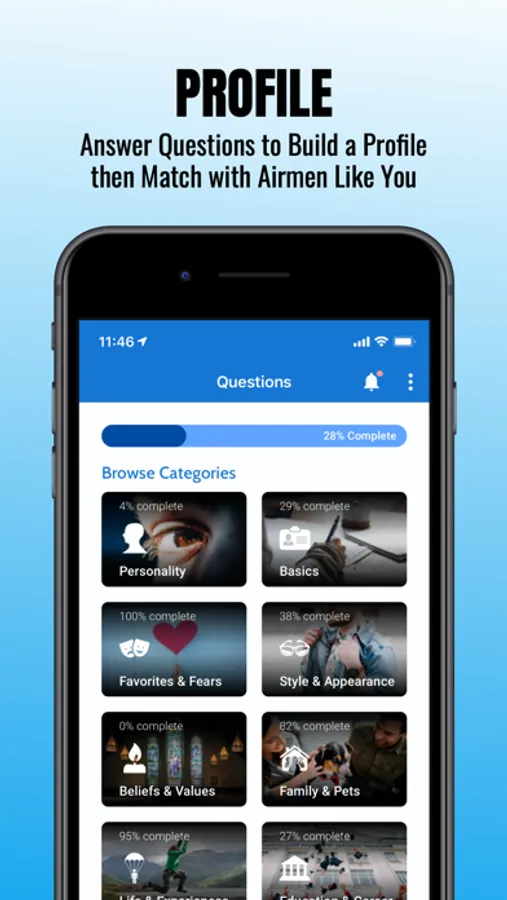 • DISCOVER and MATCH on a deeper and more meaningful level with Airmen that share the same life experiences, interests, education, habits, skills, beliefs, passions, and more.
