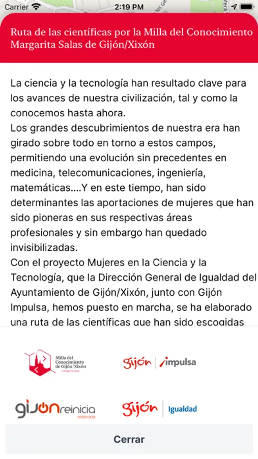 Con el proyecto Mujeres en la Ciencia y la Tecnología, que la Dirección General de Igualdad del Ayuntamiento de Gijón/Xixón, junto con Gijón Impulsa, hemos puesto en marcha, se ha elaborado una ruta de las científicas que han sido escogidas por colegios de nuestra ciudad, para visibilizar su trabajo y a la vez conocer un espacio singular de ella: La Milla del Conocimiento Margarita Salas.