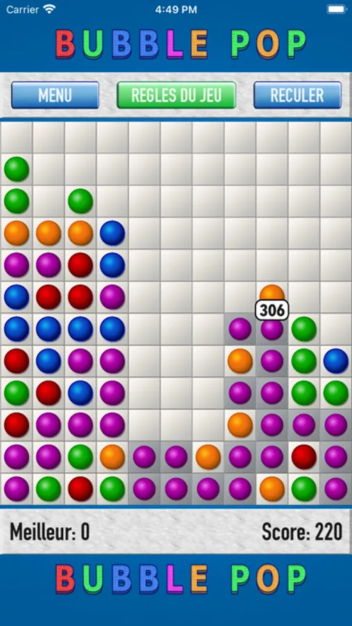 Brisez des groupes de boules de meme couleur et obtenez un score eleve. Votre meilleur score sera conserve dans le classement. Differents themes, aucune interference avec la musique, possibilite d'annuler le dernier mouvement et bien d'autres fonctionnalites.