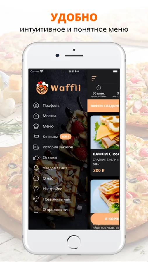 Приложение Waffli | Москва — это удобный способ заказа еды домой или в офис! Мы готовим наши блюда из качественных свежих ингредиентов и доставляем еду Москве быстро и бережно.