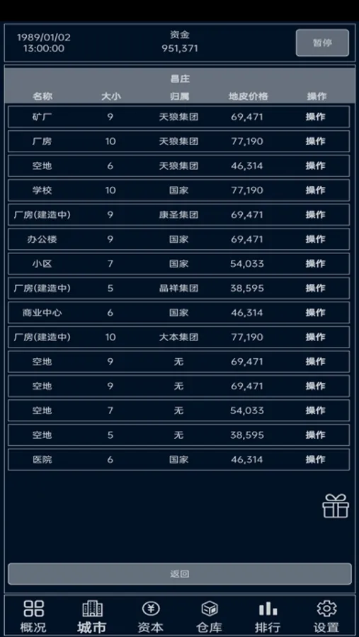 买卖地皮,采矿,生产,批发,零售,等一系列骚操作