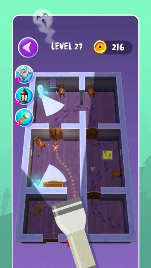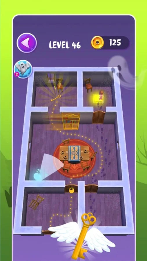 As you level up, you get more coins and chances to spin the wheel and win prizes. You can win new chances to spin the wheel again, get some game tricks such as add up extra time, freeze the ghost, turn on the lights in that dark spooky room or receive a lantern to find your way.