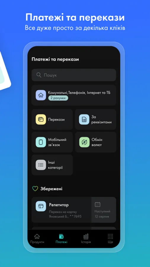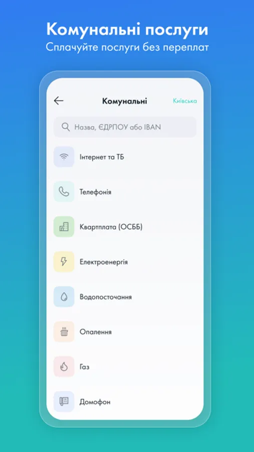 • Сплачувати за комунальні послуги простіше – регіон клієнта обраний за замовчуванням, а всі послуги тепер відображаються в розрізі категорій.