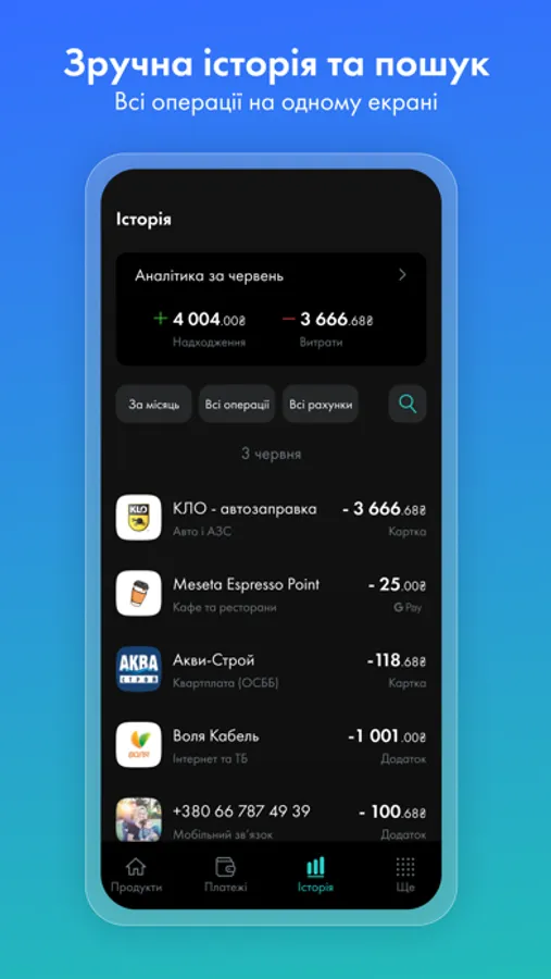 • Додаток став ще безпечніший – додано верифікацію по PIN-коду картки.