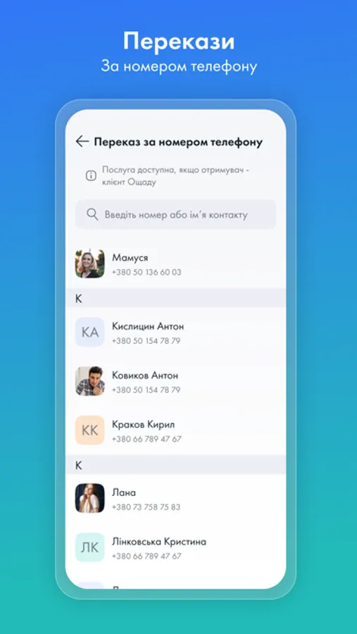 • Перекази грошей ще зручніші: за номером телефону, за номером картки, а при переказі на карту іншого банку відображається логотип банку-отримувача для того, щоб впевнитись в коректності вказаного номеру карти.