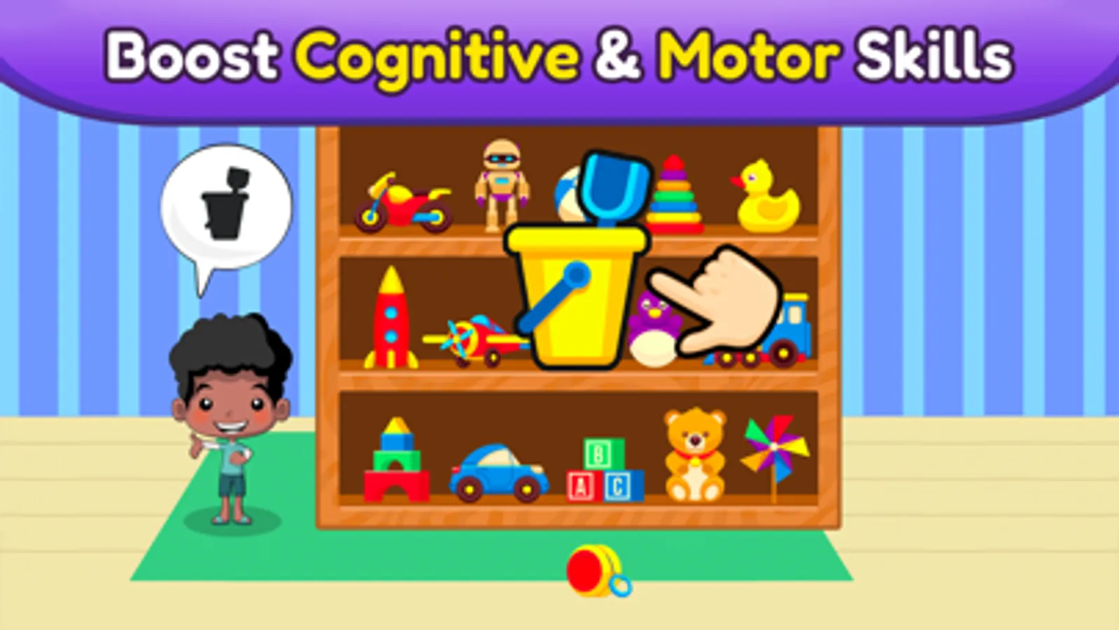 Keep your toddlers occupied with 15 different educational games, which will help them learn and improve their skills while having a great fun.
