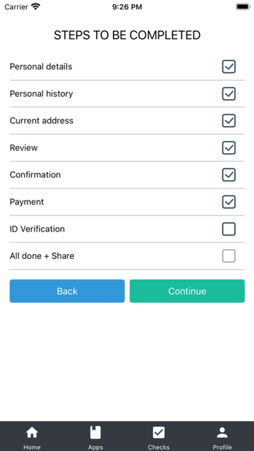 Enter your details + upload documents. You can then securely share data with potential employers; Personal info, passport copy, driving licence copy, address history, and work history etc.