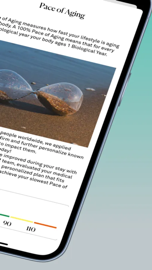 - A lifestyle plan to achieve the slower pace of aging: step-by-step, in your pace, personalized to you.
